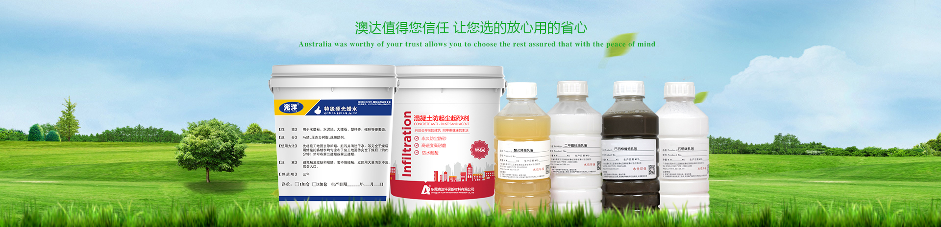 > 水性蠟乳液在特種紙張防潮防水方面的應用 2018-09-20> 澳達水性脫模劑大大減少模具與產品之間的摩擦,脫模更加順暢延長模具壽命 2018-07-31> 澳達拉鏈潤滑劑能有效解決拉鏈卡頓現(xiàn)象 2018-07-31> 改變真石漆色差和提高真石漆防水性能的方法 2018-07-31> 荷葉疏水劑,防水劑有效解決涂料雨天潮熱、起泡、發(fā)霉、現(xiàn)象 2018-07-30查看更多... -
